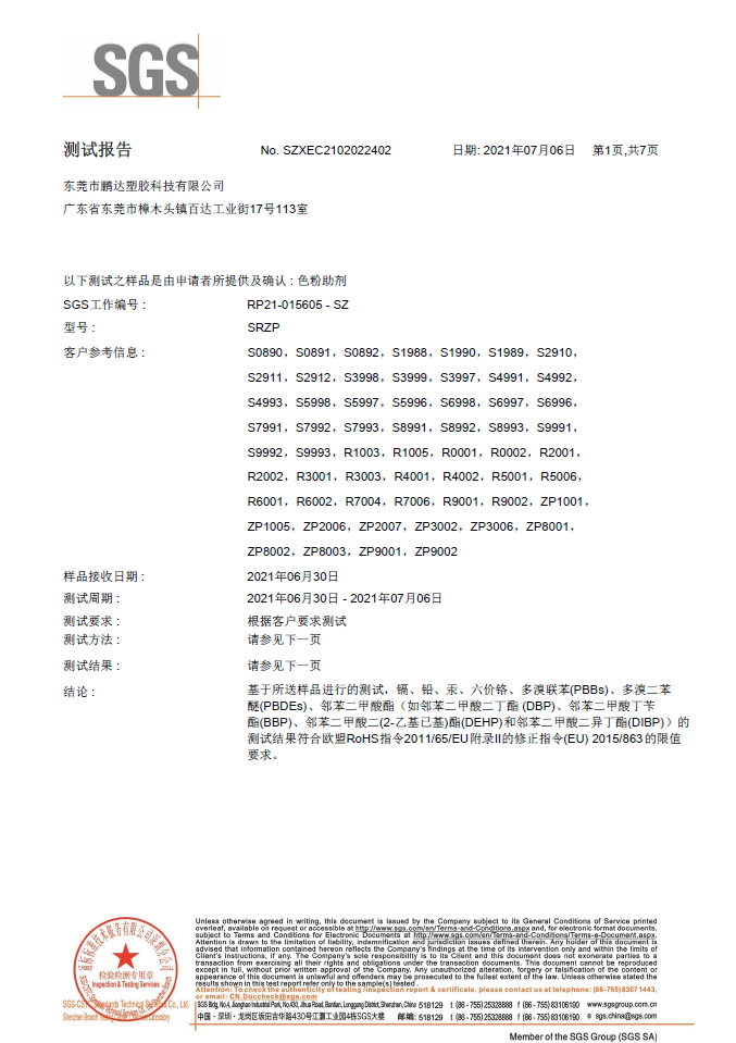原材料通過SGS測(cè)試符合歐盟REACH,PaHS、ROHS及無(wú)鹵指令,備有美國(guó)